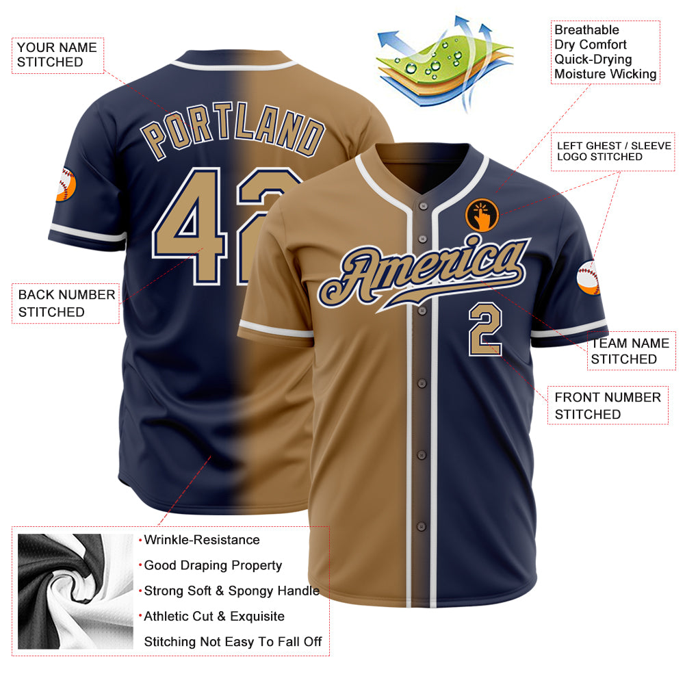 Custom Navy Old Gold-White Authentic Gradient Fashion Baseball Jersey