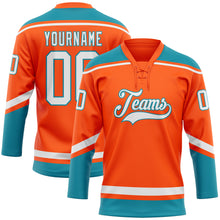 • Charger l'image dans la galerie, Custom Orange White-Teal Hockey Lace Neck Jersey