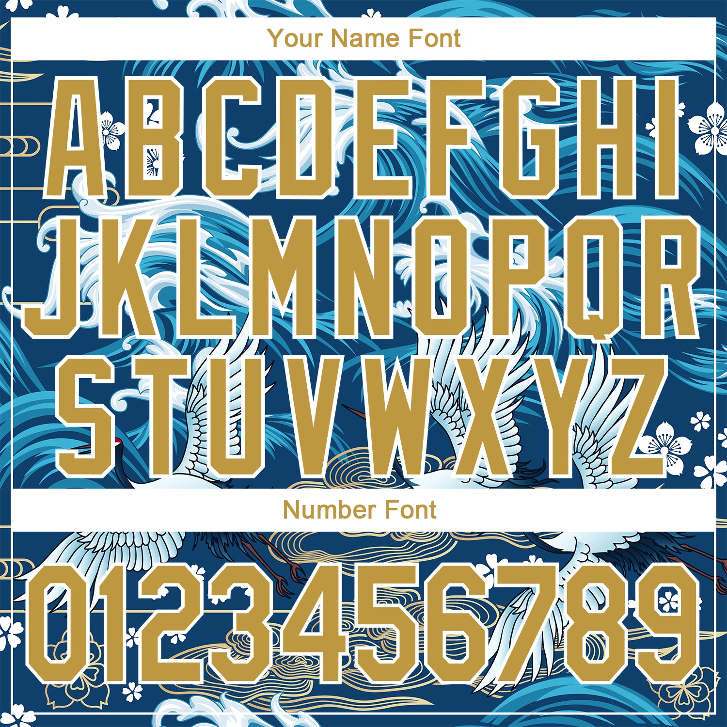 Custom Stitched Royal Old Gold-White 3D Pattern Design Crane And Cloud Sports Pullover Sweatshirt Hoodie