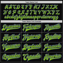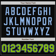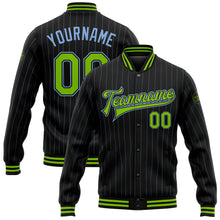 • Charger l'image dans la galerie, Custom Black Light Blue Pinstripe Neon Green Bomber Full-Snap Varsity Letterman Jacket