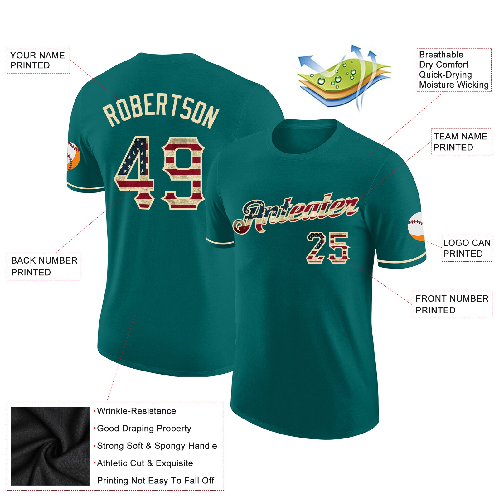 Custom Teal Vintage USA Flag-City Cream Performance T-Shirt