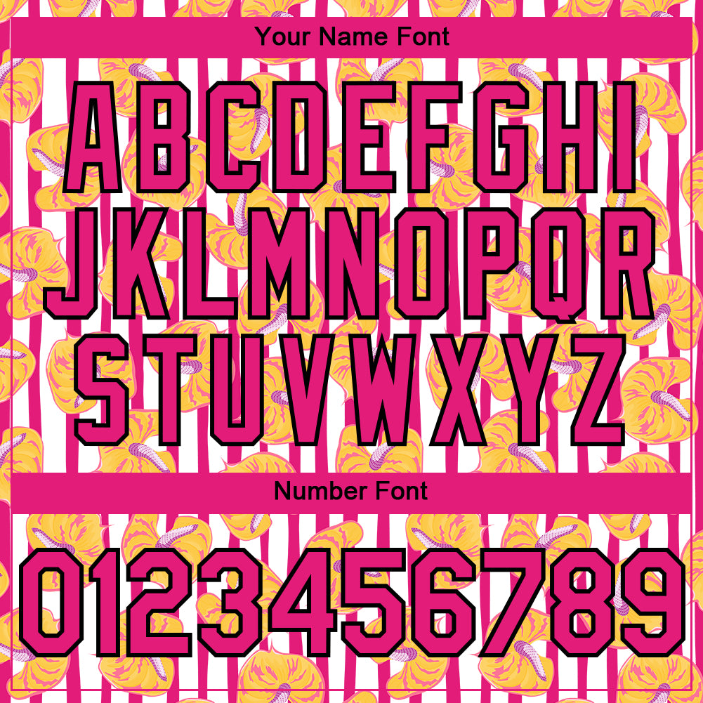 Custom White Hot Pink-Black 3D Pattern Design Tropical Anthurium Flower Authentic Baseball Jersey