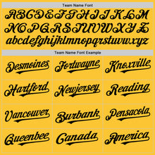 • Load image into Gallery viewer, Custom Gold Black Mesh Authentic Throwback Baseball Jersey