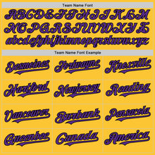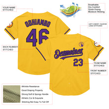 • Load image into Gallery viewer, Custom Gold Purple-Black Mesh Authentic Throwback Baseball Jersey