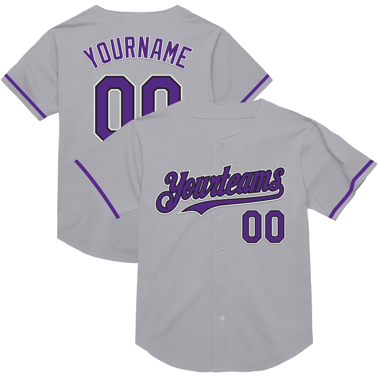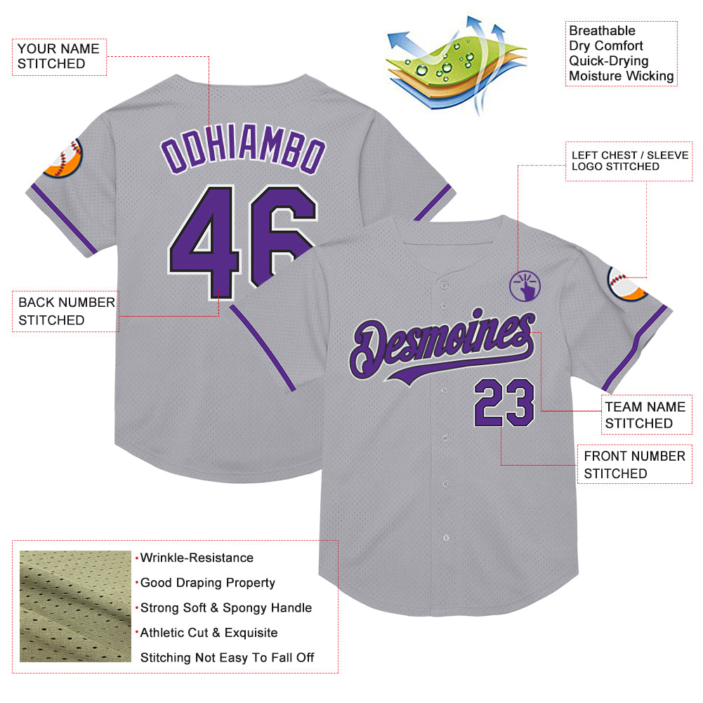 Custom Gray Purple-Black Mesh Authentic Throwback Baseball Jersey