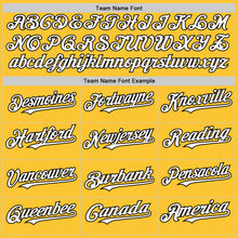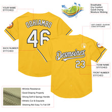 • Load image into Gallery viewer, Custom Gold White-Black Mesh Authentic Throwback Baseball Jersey