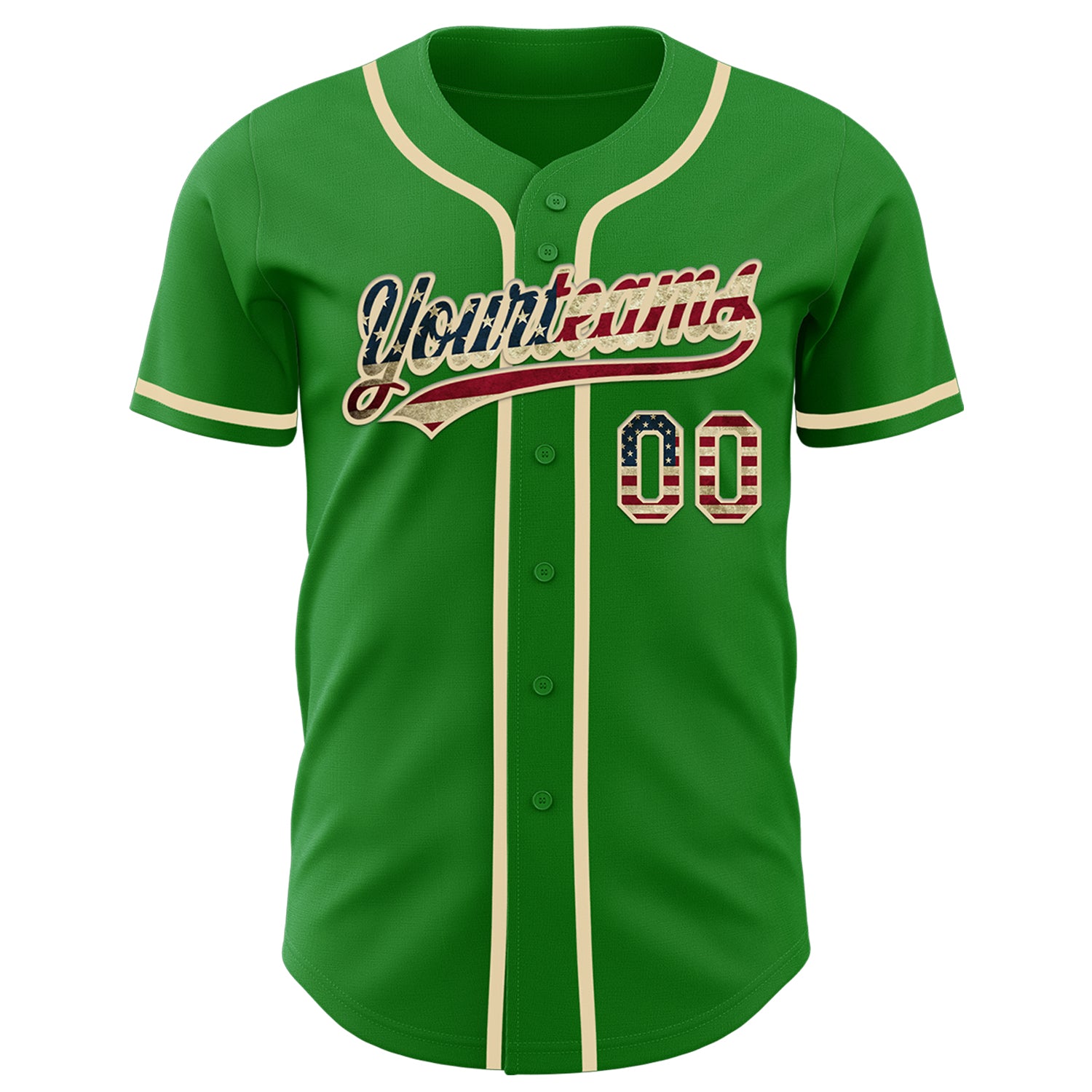 Custom Grass Green Vintage USA Flag-Cream Authentic Baseball Jersey