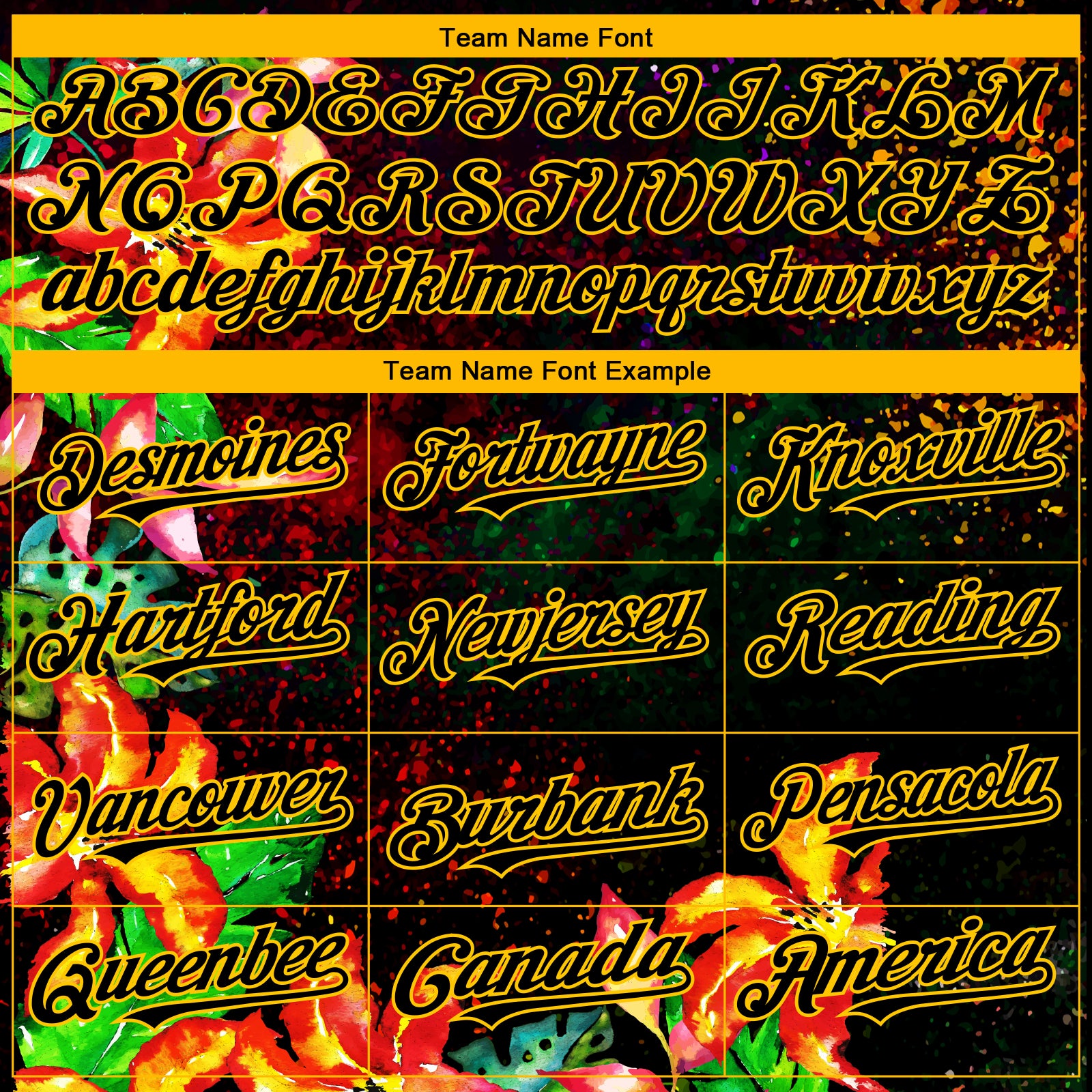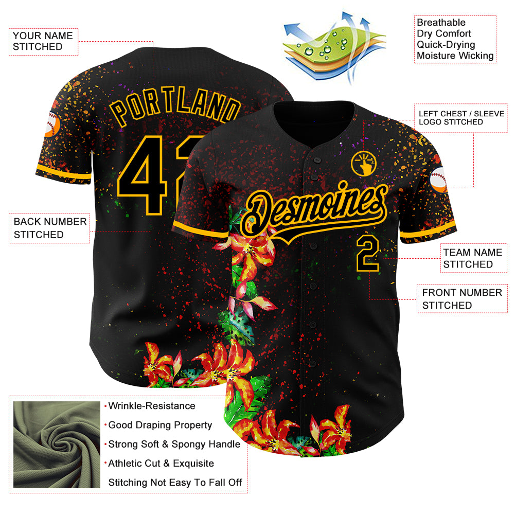 Custom Black Gold 3D Pattern Design Holi Festival Color Powder Authentic Baseball Jersey