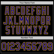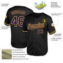 • Load image into Gallery viewer, Custom Black Dark Purple-Gold Mesh Authentic Throwback Baseball Jersey