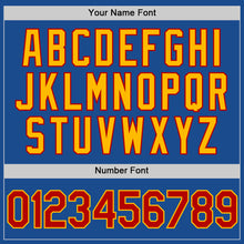 • Load image into Gallery viewer, Custom Blue Red-Gold Authentic Throwback Baseball Jersey