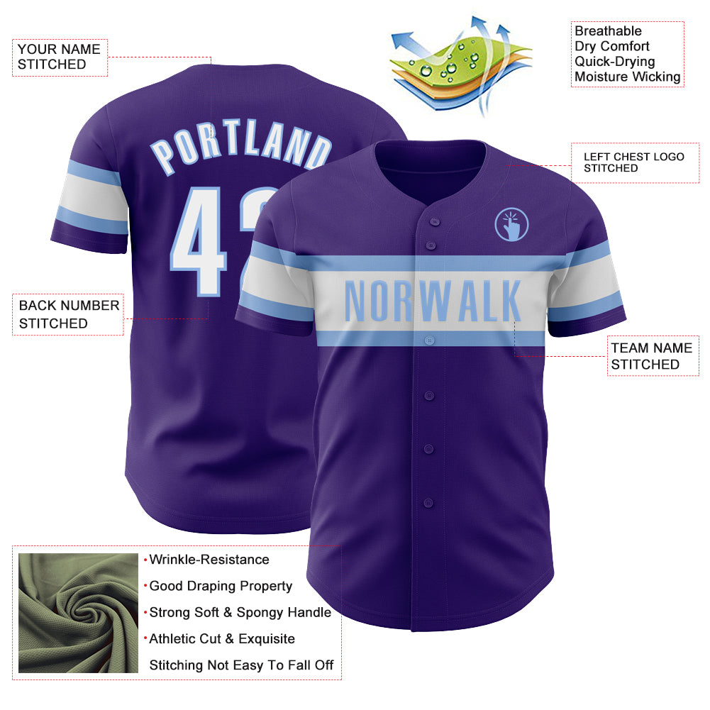 Custom Purple White-Light Blue Authentic Baseball Jersey
