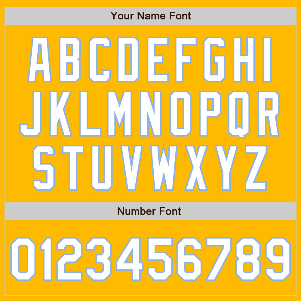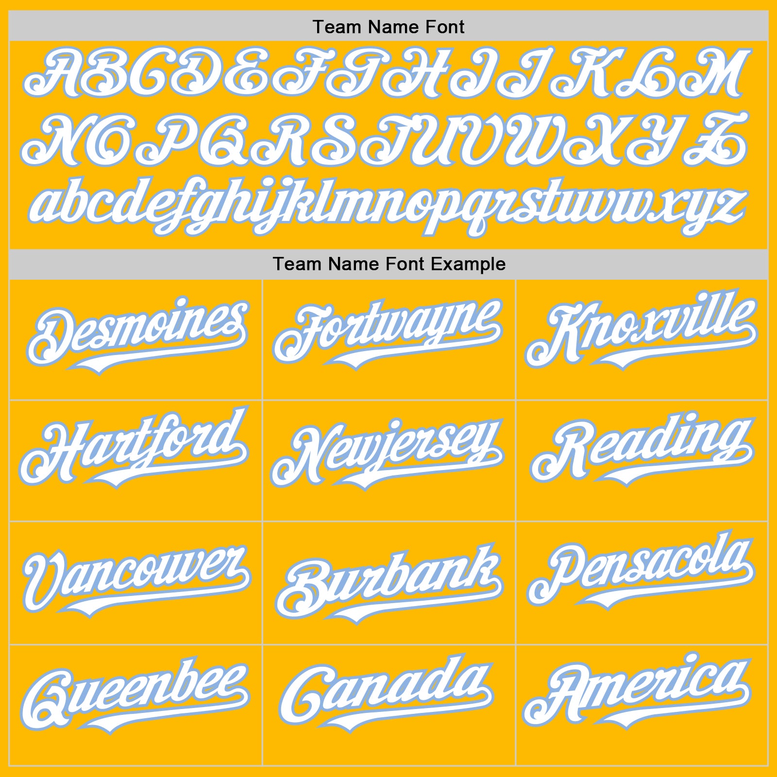Custom Gold White-Light Blue 3 Colors Arm Shapes Authentic Baseball Jersey