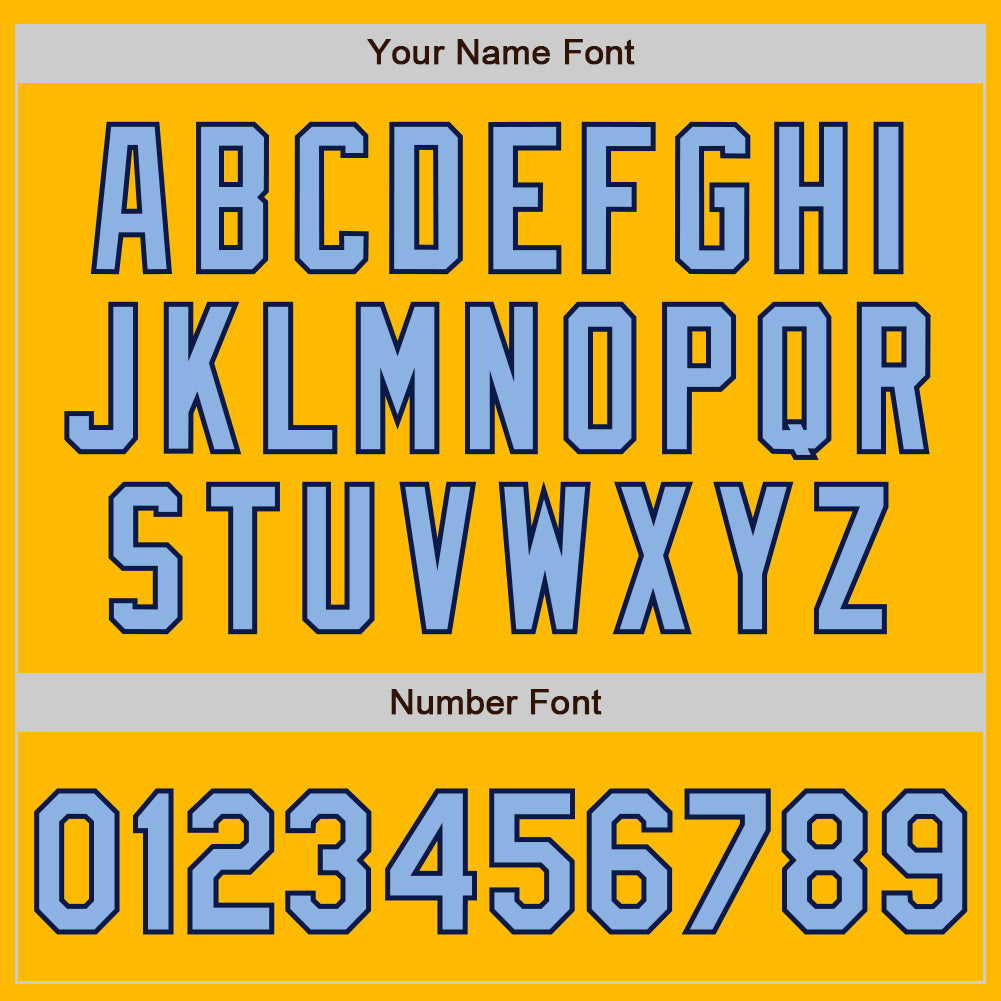 Custom Gold Light Blue-Navy 3 Colors Arm Shapes Authentic Baseball Jersey