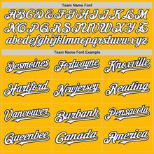 • Load image into Gallery viewer, Custom Gold White-Navy 3 Colors Arm Shapes Authentic Baseball Jersey