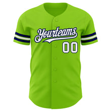 • Load image into Gallery viewer, Custom Neon Green White-Navy Authentic Baseball Jersey