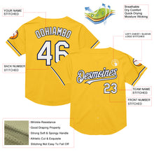 • Load image into Gallery viewer, Custom Gold White-Navy Mesh Authentic Throwback Baseball Jersey