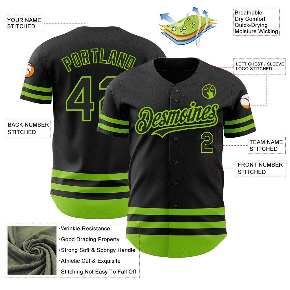 Custom Black Neon Green Line Authentic Baseball Jersey