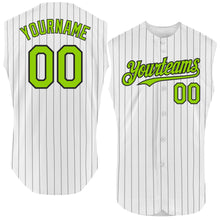 • Load image into Gallery viewer, Custom White Black Pinstripe Neon Green Authentic Sleeveless Baseball Jersey
