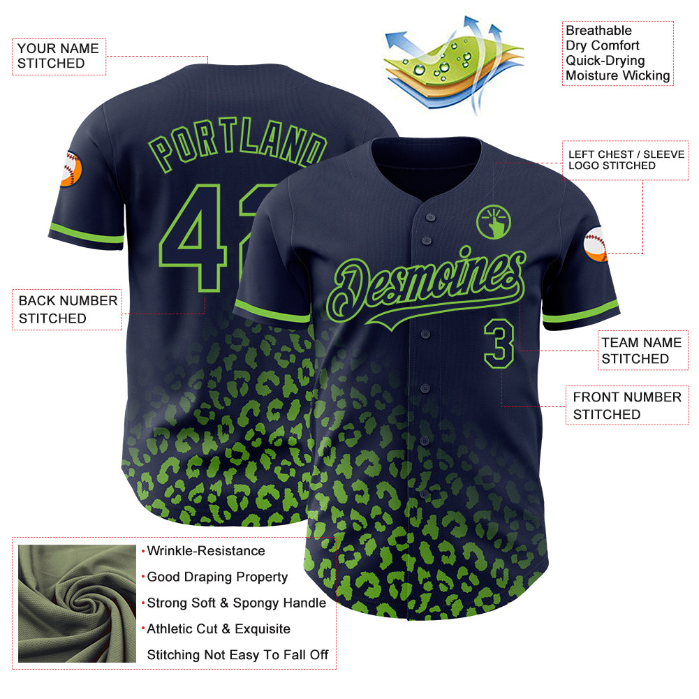 Custom Navy Neon Green 3D Pattern Design Leopard Print Fade Fashion Authentic Baseball Jersey