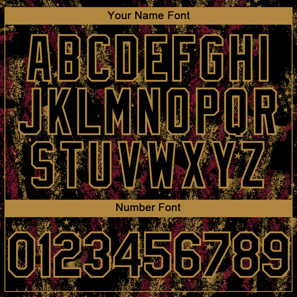 Custom Black Old Gold 3D American Flag Skull Patriotic Authentic Baseball Jersey