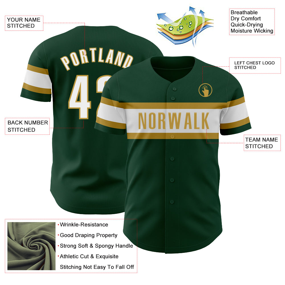 Custom Green White-Old Gold Authentic Baseball Jersey