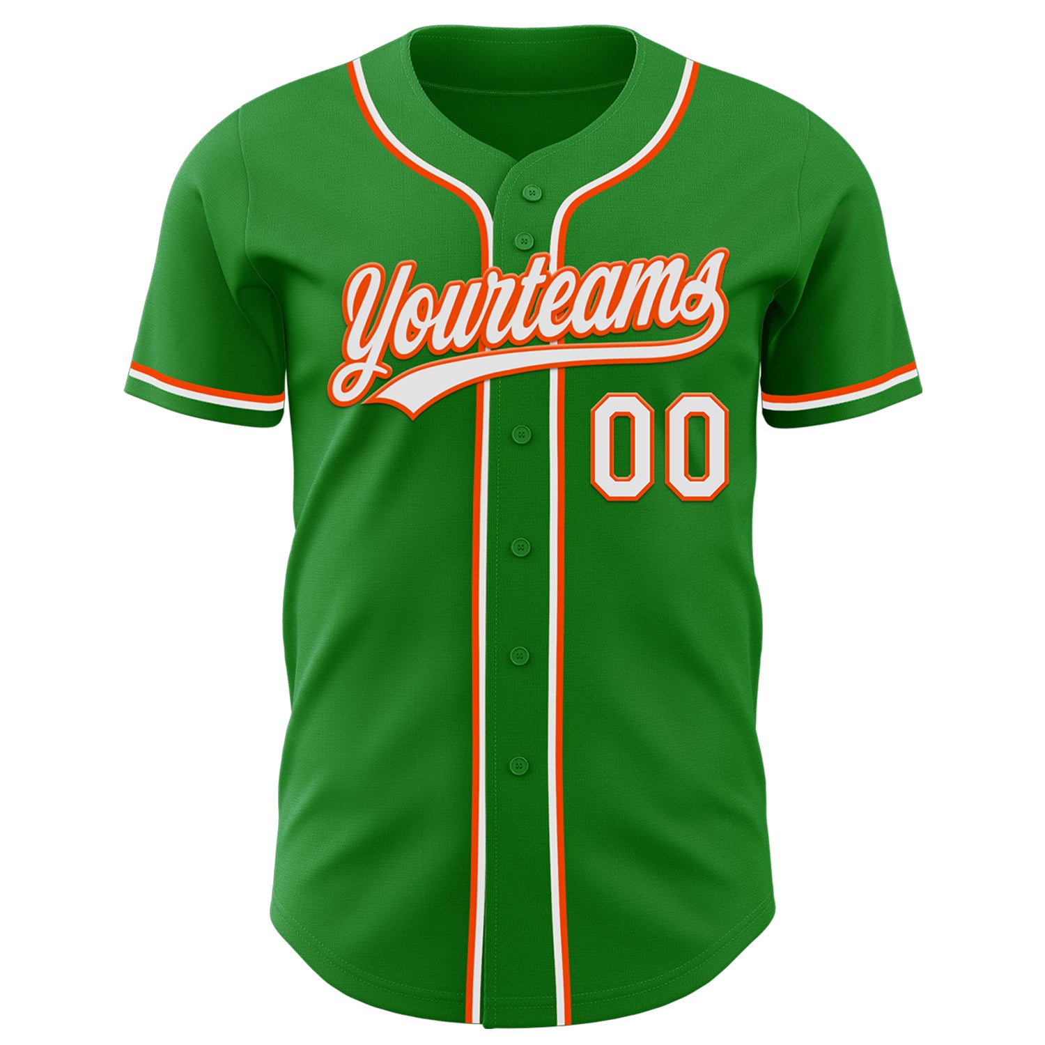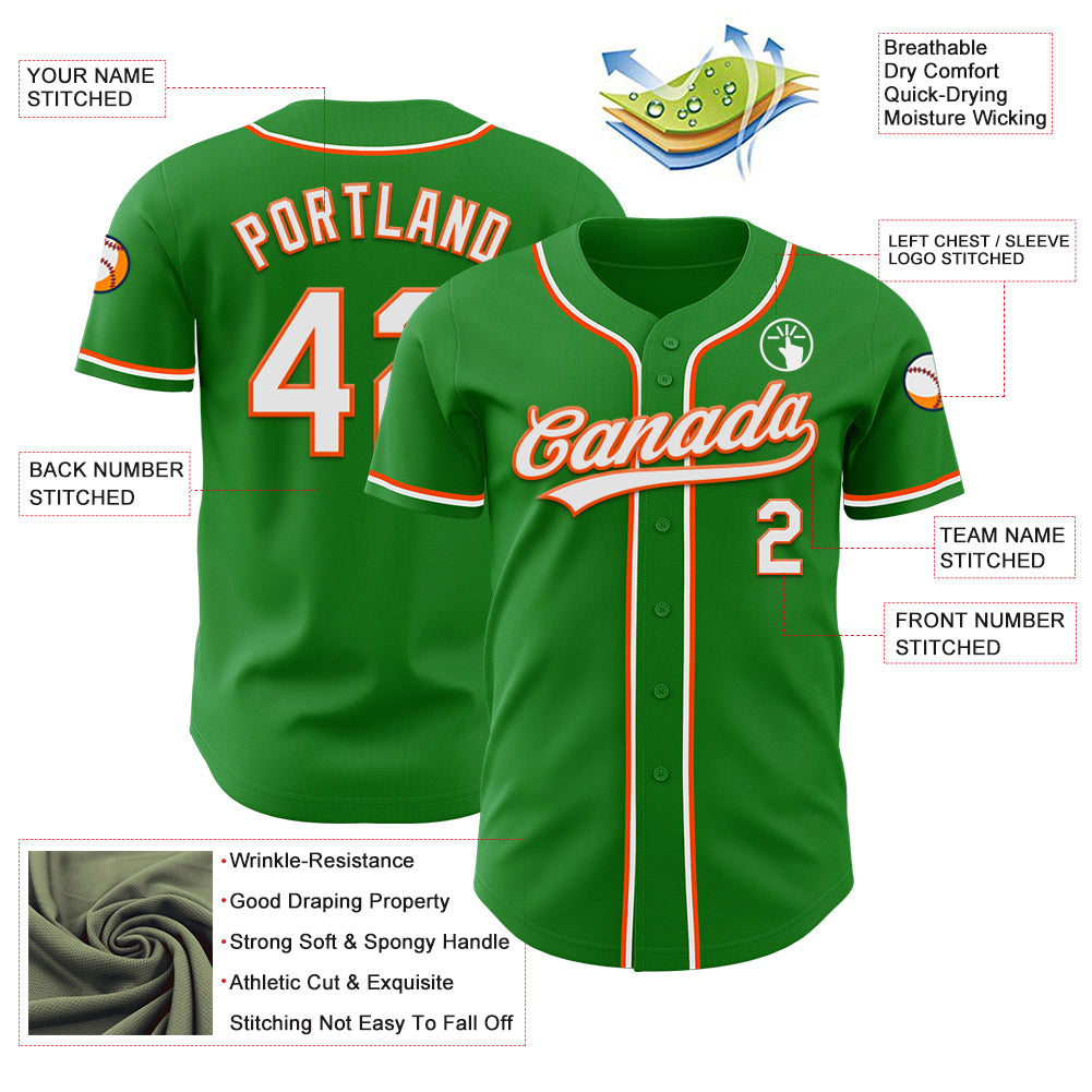 Custom Grass Green White-Orange Authentic Baseball Jersey