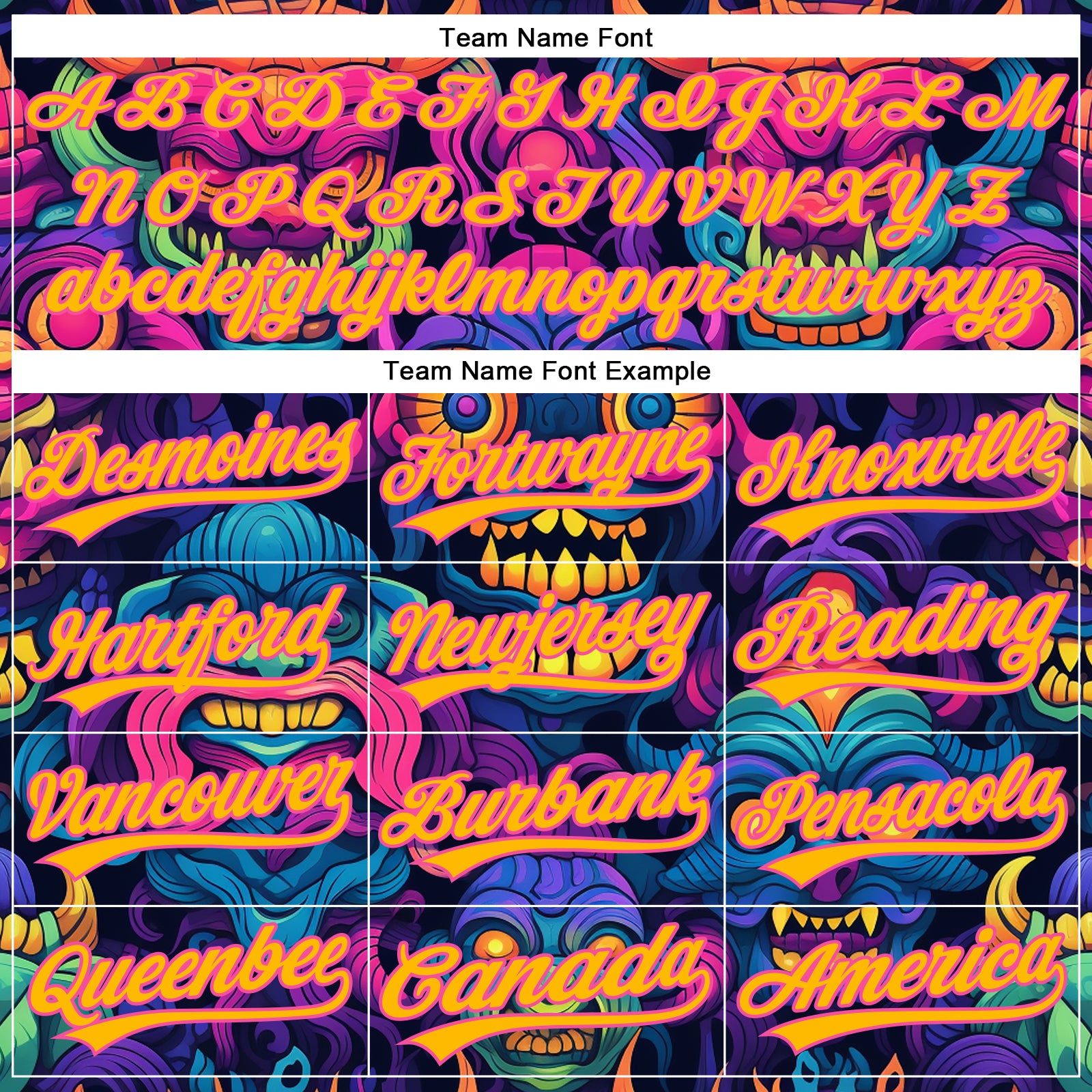 Custom Black Gold-Pink 3D Pattern Design Abstract Monsters Authentic Baseball Jersey