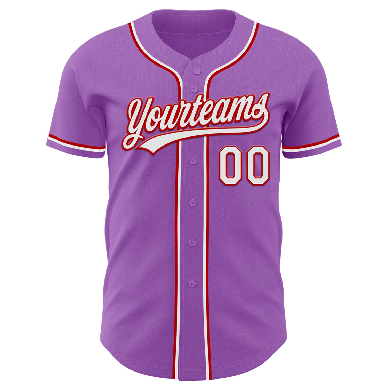 Custom Medium Purple White-Red Authentic Baseball Jersey