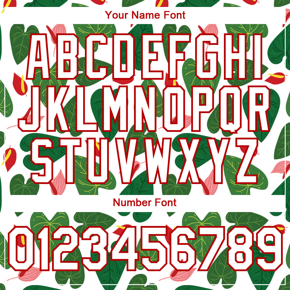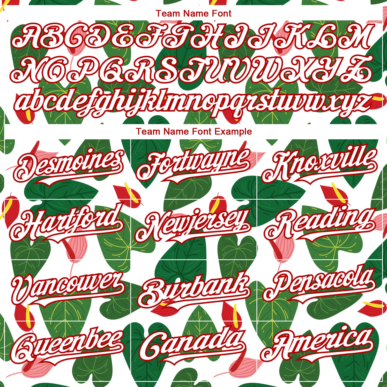 Custom White Red 3D Pattern Design Tropical Anthurium Flower Authentic Baseball Jersey