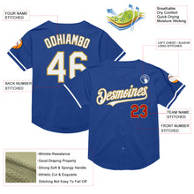 • Load image into Gallery viewer, Custom Royal Red-Old Gold Mesh Authentic Throwback Baseball Jersey