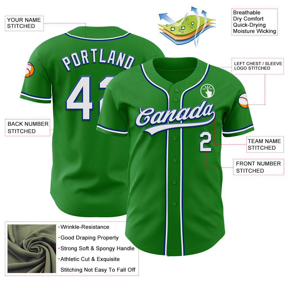 Custom Grass Green White-Royal Authentic Baseball Jersey