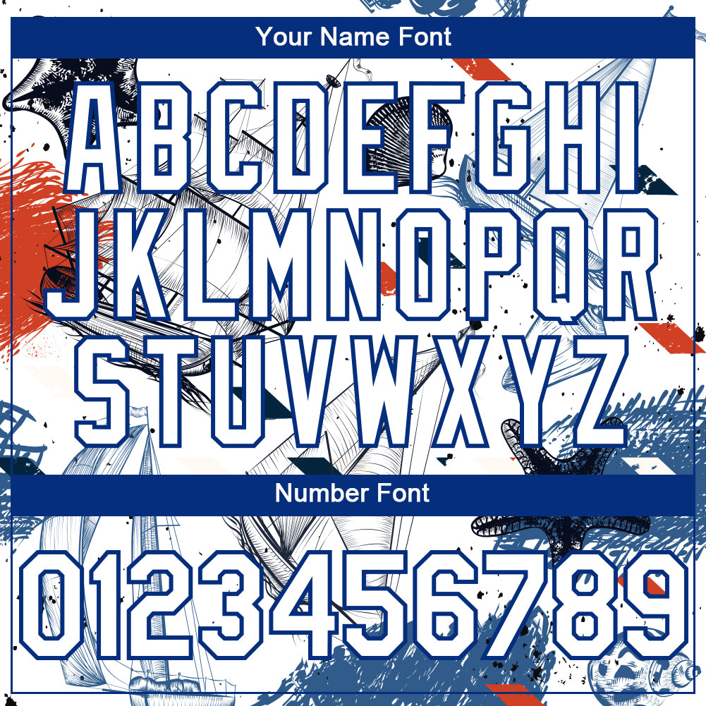 Custom White Royal 3D Pattern Design Sailing Boats Authentic Baseball Jersey