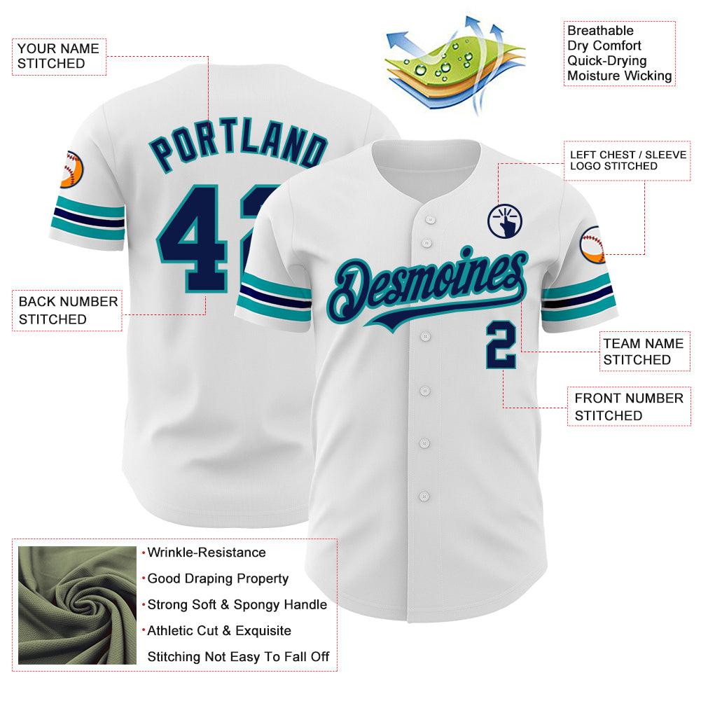 Custom White Navy-Teal Authentic Baseball Jersey