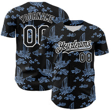 • Load image into Gallery viewer, Custom Black White-Light Blue 3D Pattern Design Boats And Fish Authentic Baseball Jersey