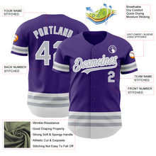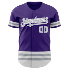 • Load image into Gallery viewer, Custom Purple Gray-White Line Authentic Baseball Jersey