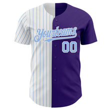 • Load image into Gallery viewer, Custom Purple White-Light Blue Pinstripe Authentic Split Fashion Baseball Jersey