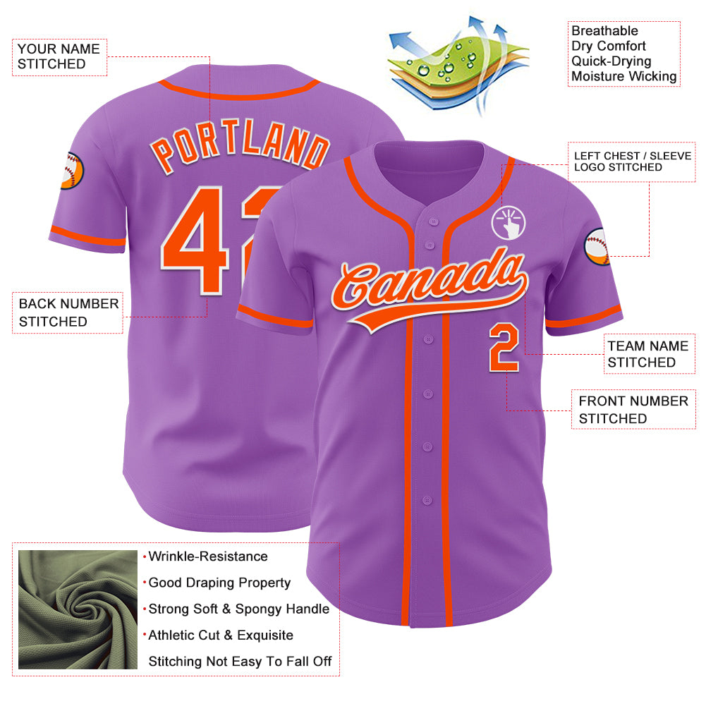 Custom Medium Purple Orange-White Authentic Baseball Jersey