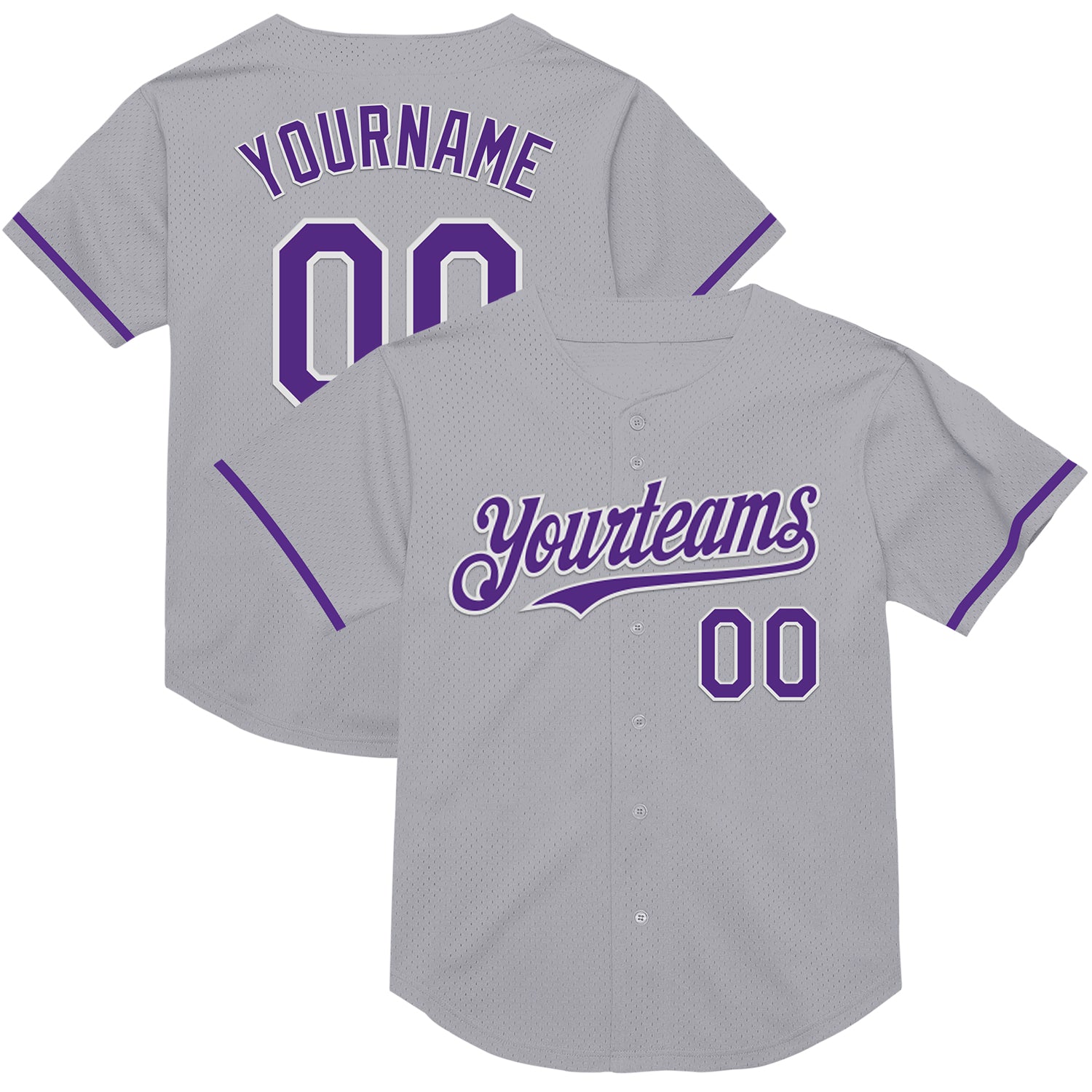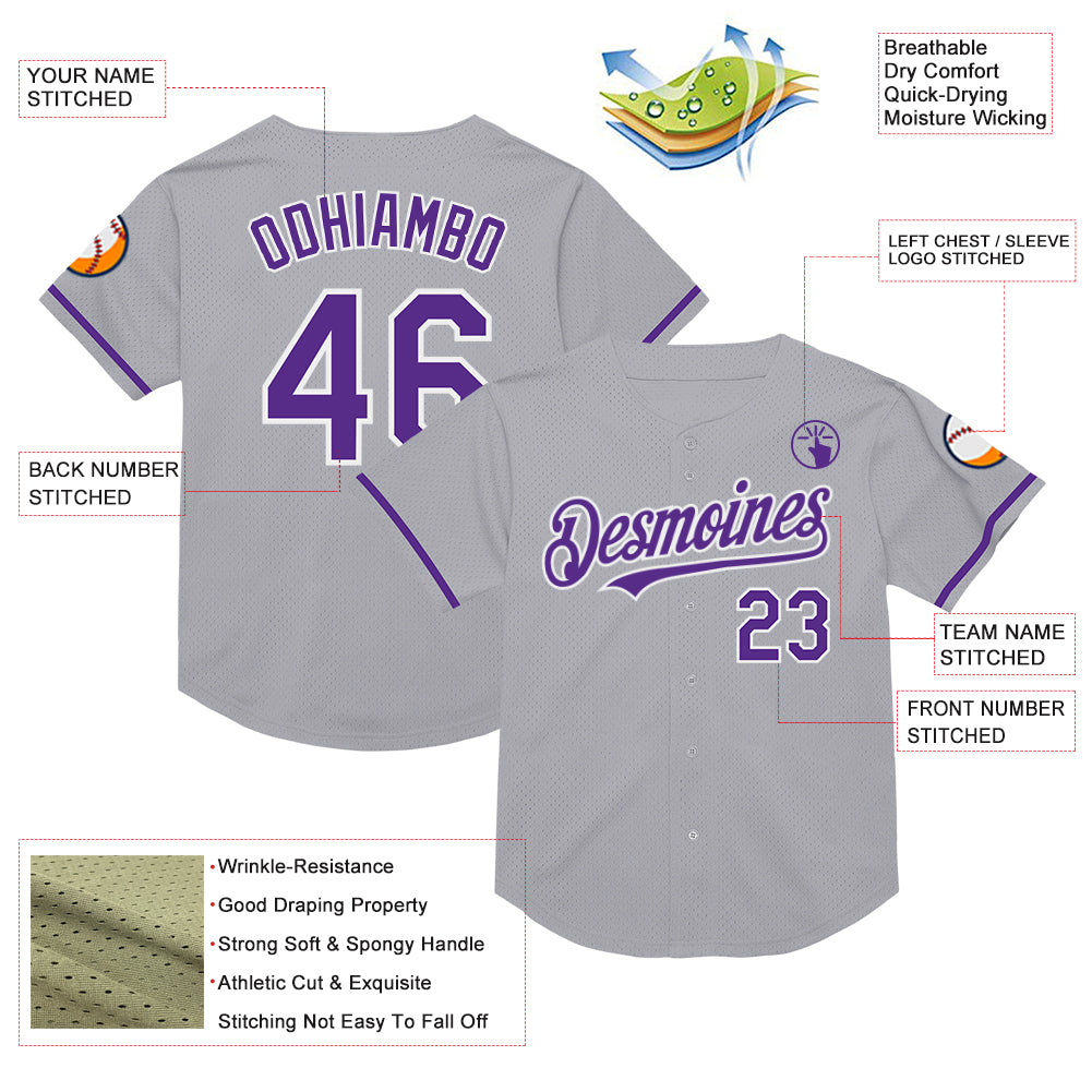 Custom Gray Purple-White Mesh Authentic Throwback Baseball Jersey