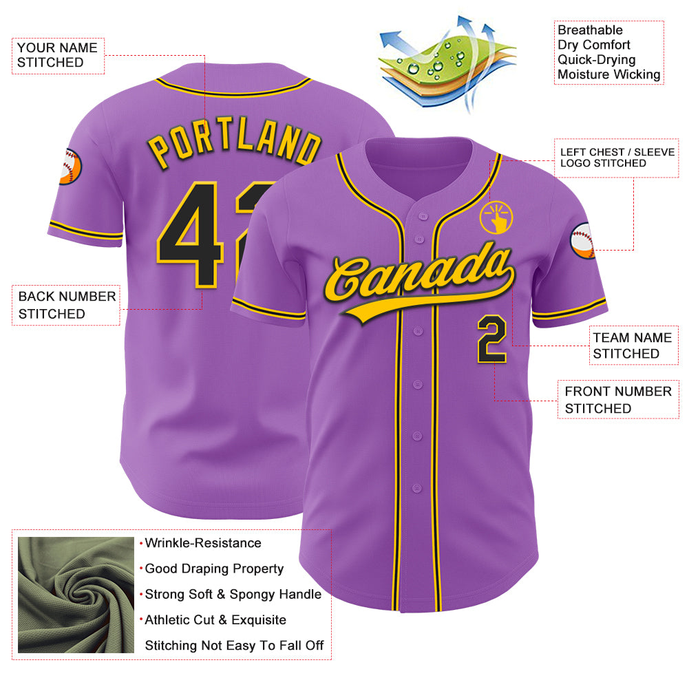 Custom Medium Purple Black-Yellow Authentic Baseball Jersey