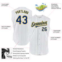 • Load image into Gallery viewer, Custom White Royal Pinstripe Yellow Authentic Sleeveless Baseball Jersey
