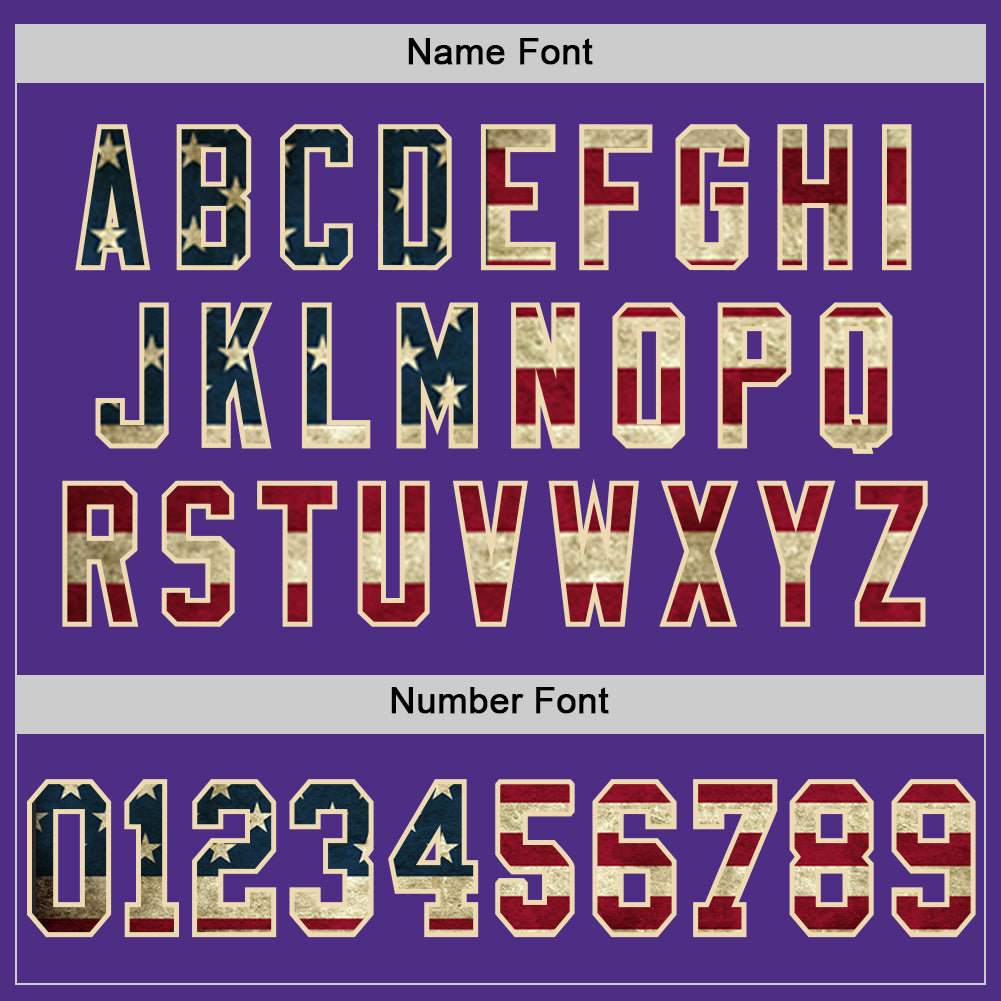 • Load image into Gallery viewer, Custom Purple Vintage USA Flag Cream-Black Mesh Authentic Throwback Football Jersey