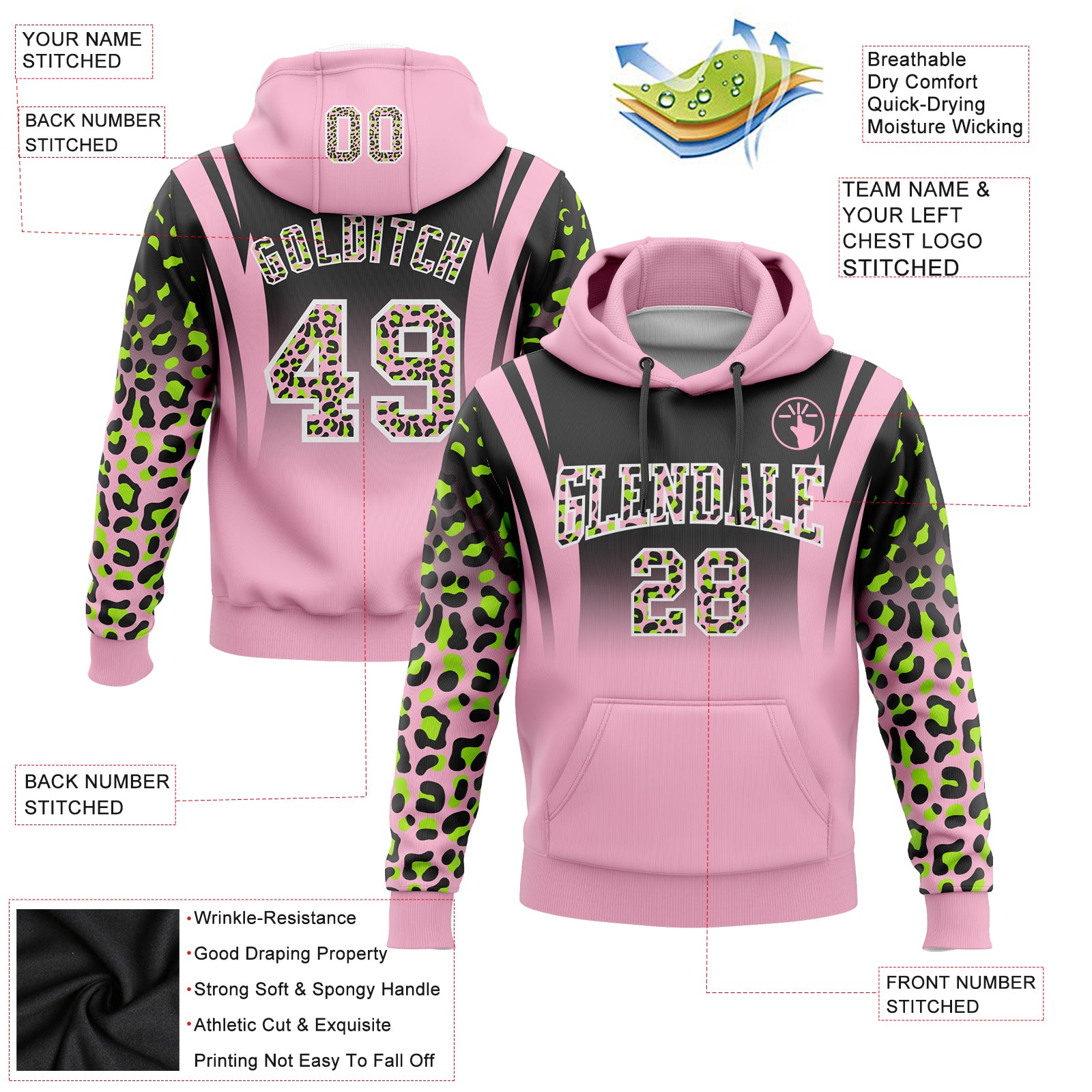 Custom Stitched Black Light Pink-Neon Green Fade Fashion Leopard Print Sports Pullover Sweatshirt Hoodie