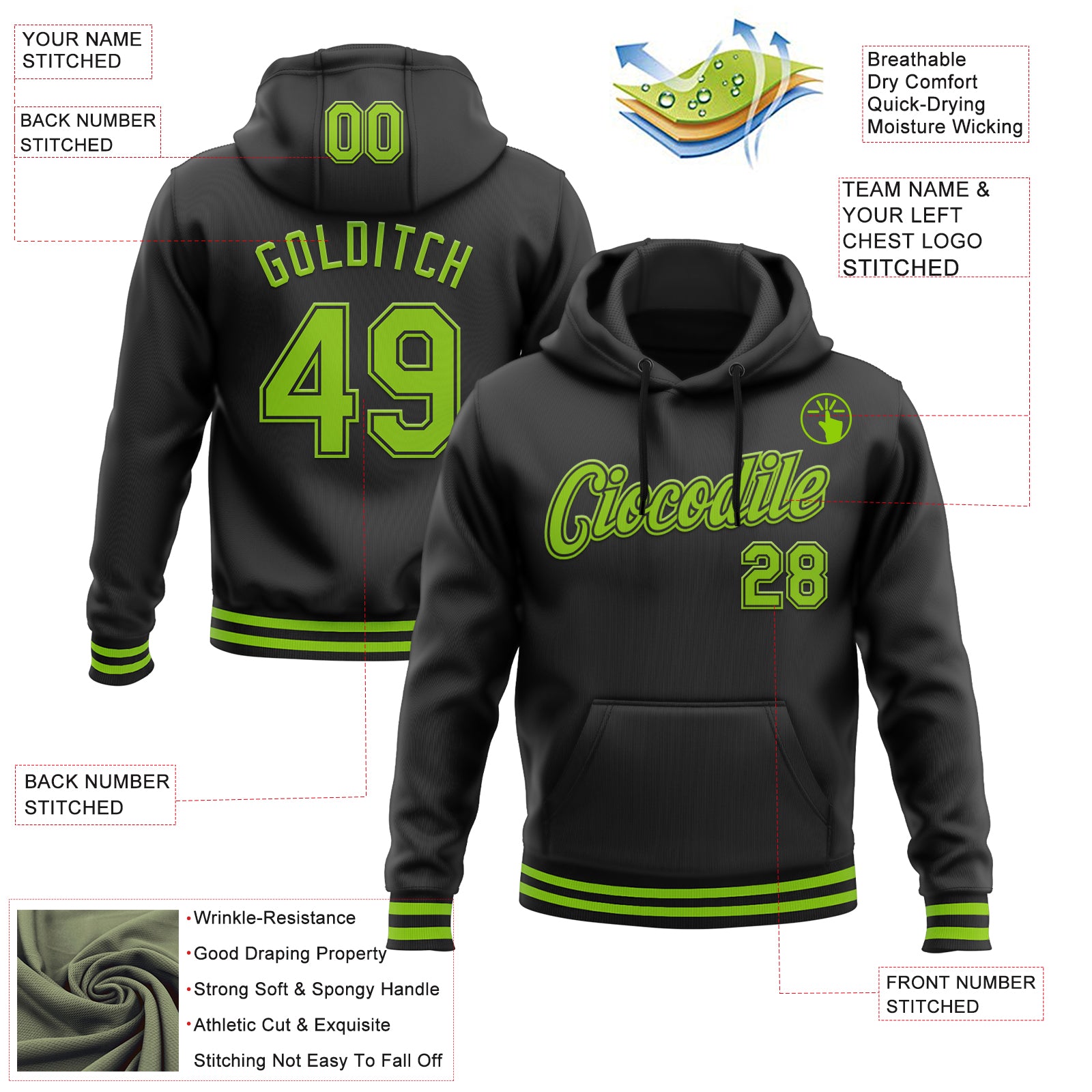 Custom Stitched Black Neon Green Sports Pullover Sweatshirt Hoodie