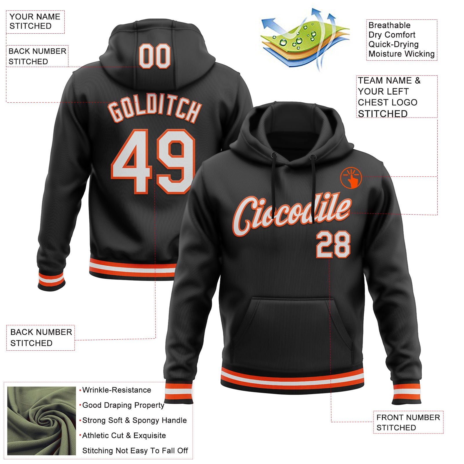 Custom Stitched Black White-Orange Sports Pullover Sweatshirt Hoodie