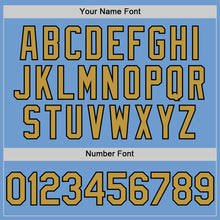 • Load image into Gallery viewer, Custom Light Blue Old Gold-Black Bomber Full-Snap Varsity Letterman Hoodie Jacket