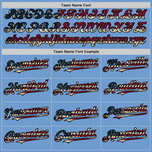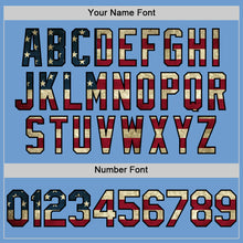 • Load image into Gallery viewer, Custom Light Blue Vintage USA Flag Black-Cream Bomber Full-Snap Varsity Letterman Hoodie Jacket
