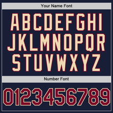• Load image into Gallery viewer, Custom Navy Maroon-Cream Bomber Full-Snap Varsity Letterman Two Tone Hoodie Jacket