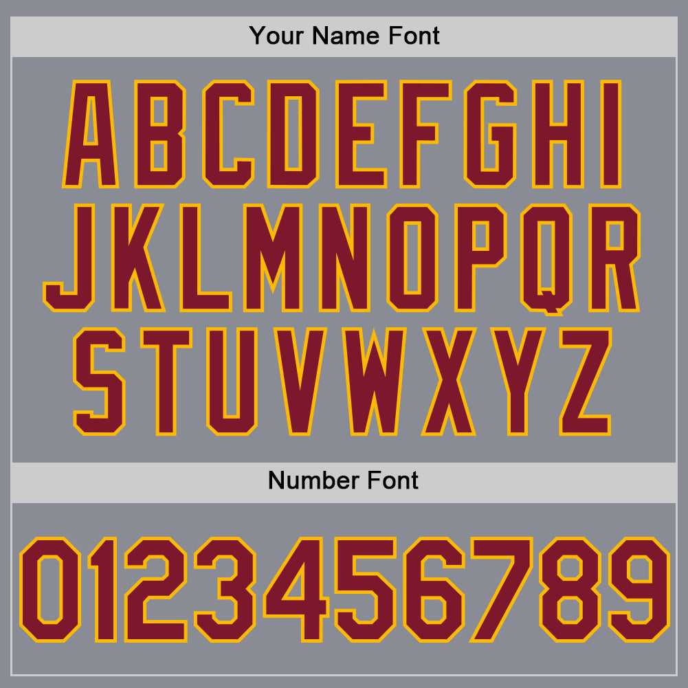 Custom Gray Crimson-Gold Bomber Full-Snap Varsity Letterman Hoodie Jacket