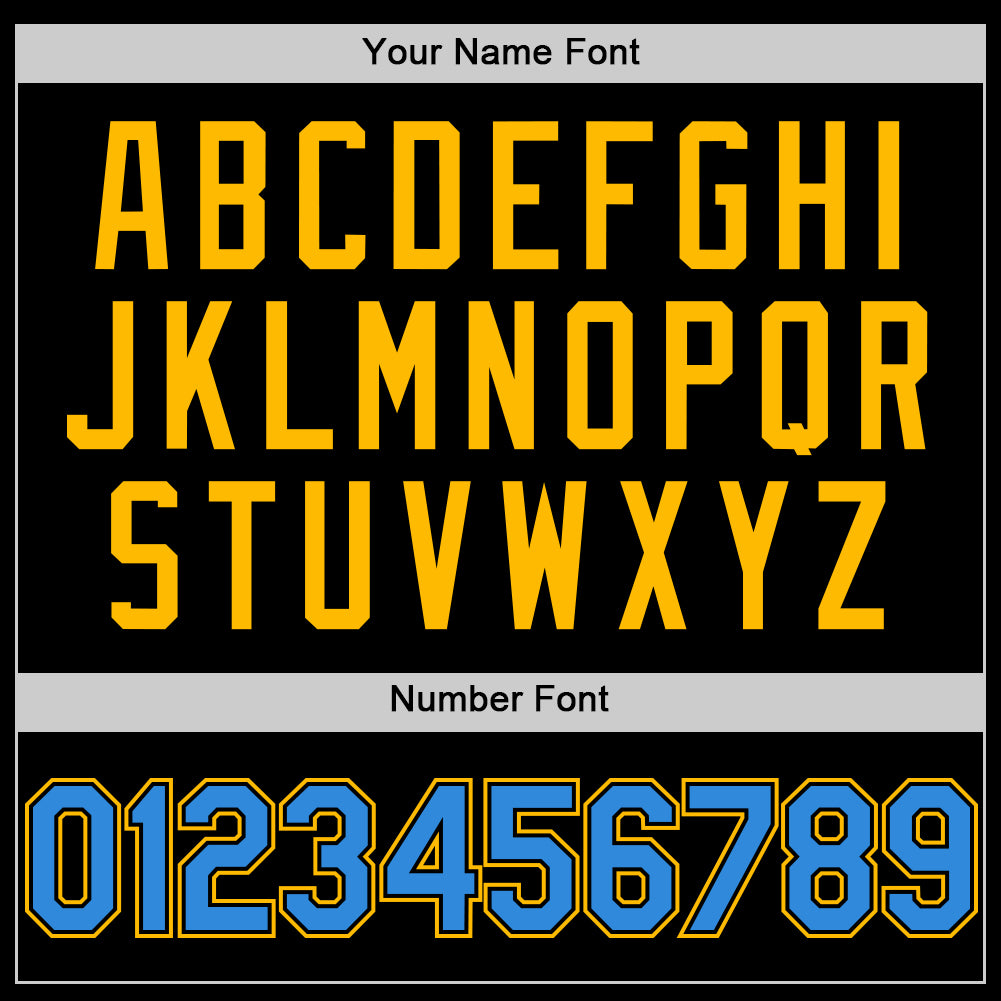Custom Black Powder Blue-Gold Bomber Full-Snap Varsity Letterman Two Tone Hoodie Jacket