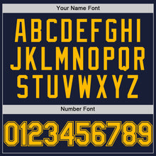 • Load image into Gallery viewer, Custom Navy Gold Bomber Full-Snap Varsity Letterman Hoodie Jacket